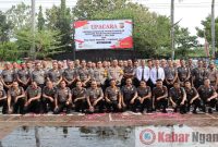 Nganjuk – Kapolres Nganjuk, AKBP Muhammad, S.H., S.I.K., M.Si., didampingi Ny. Anggun Muhammad, Wakapolres, Pejabat Utama (PJU), Kapolsek jajaran, anggota Polres dan Taruna Latja…